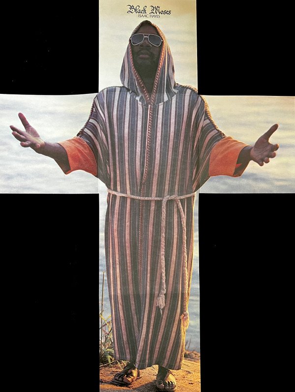 A Larry Shaw, director de marketing y publicidad de Stax, se le ocurrió la idea de titular el LP de Hayes » Black Moses» . [ 9 ] También ideó, con la ayuda de Ron Gordon, miembro de Bar-Kays , una portada desplegable que se desplegaba en una imagen del tamaño de un póster de Hayes, vestido con un atuendo de inspiración bíblica como «Black Moses». [ 9 ]