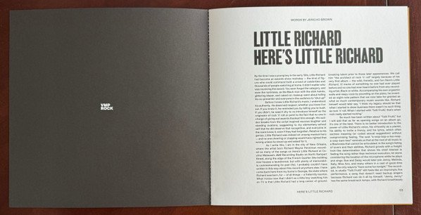 Here’s Little Richard es el primer álbum de estudio del cantante Little Richard, lanzado en marzo de 1957. El álbum contiene seis éxitos que habían alcanzado el Top 40 del año anterior, algunos de los cuales fueron incluidos en esta grabación. El álbum alcanzó el n.º 13 en la lista Billboard Pop Albums. En 2003, el álbum fue colocado en la posición 50 en la lista de los 500 mejores álbumes de todos los tiempos elaborada por la revista Rolling Stone. El álbum contiene dos de los mayores éxitos de Richard, «Long Tall Sally«, que alcanzó el n.º 6 en las listas de pop de EE. UU., y «Jenny, Jenny«, que alcanzó el n.º 10 en las listas de pop de EE. UU.